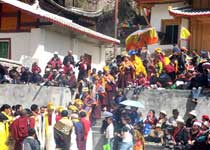 主要活動:農(nóng)歷6月15日相傳為黃龍真人修道成仙日,都要舉辦盛大的廟會,附近居民帶上炊具、帳篷前來趕會。集會上舉行藏戲表演、民歌對唱,青年壯士們還要進行摔跤、射箭等活動。