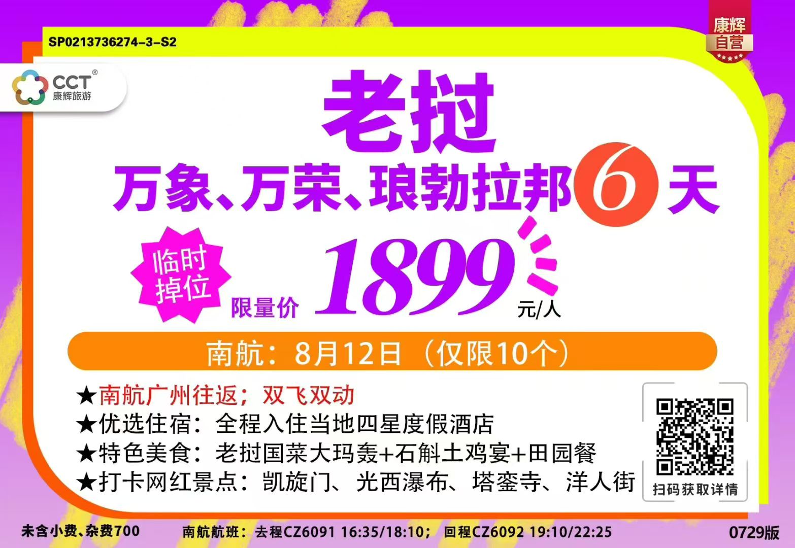 【自營(yíng)】<特惠.漫游老撾>CZ廣州往返 萬象、萬榮、瑯勃拉邦飛雙動(dòng)6天5晚跟團(tuán)游