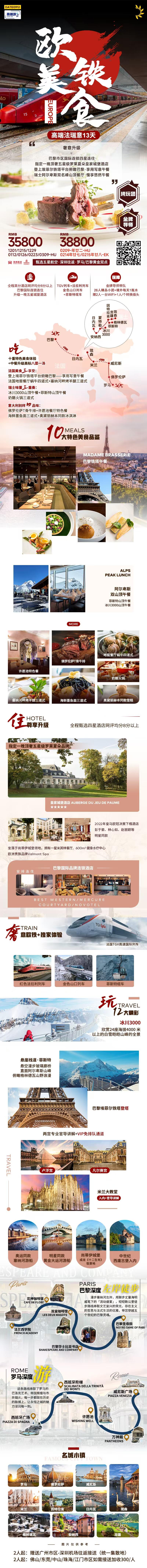 歐鐵美食丨奢意升級(jí)·高端法意瑞純玩13天