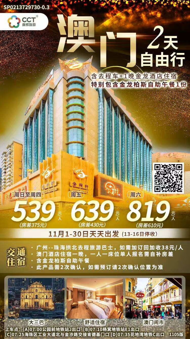 11月1-30日天天出發(fā)(13-16日停收)