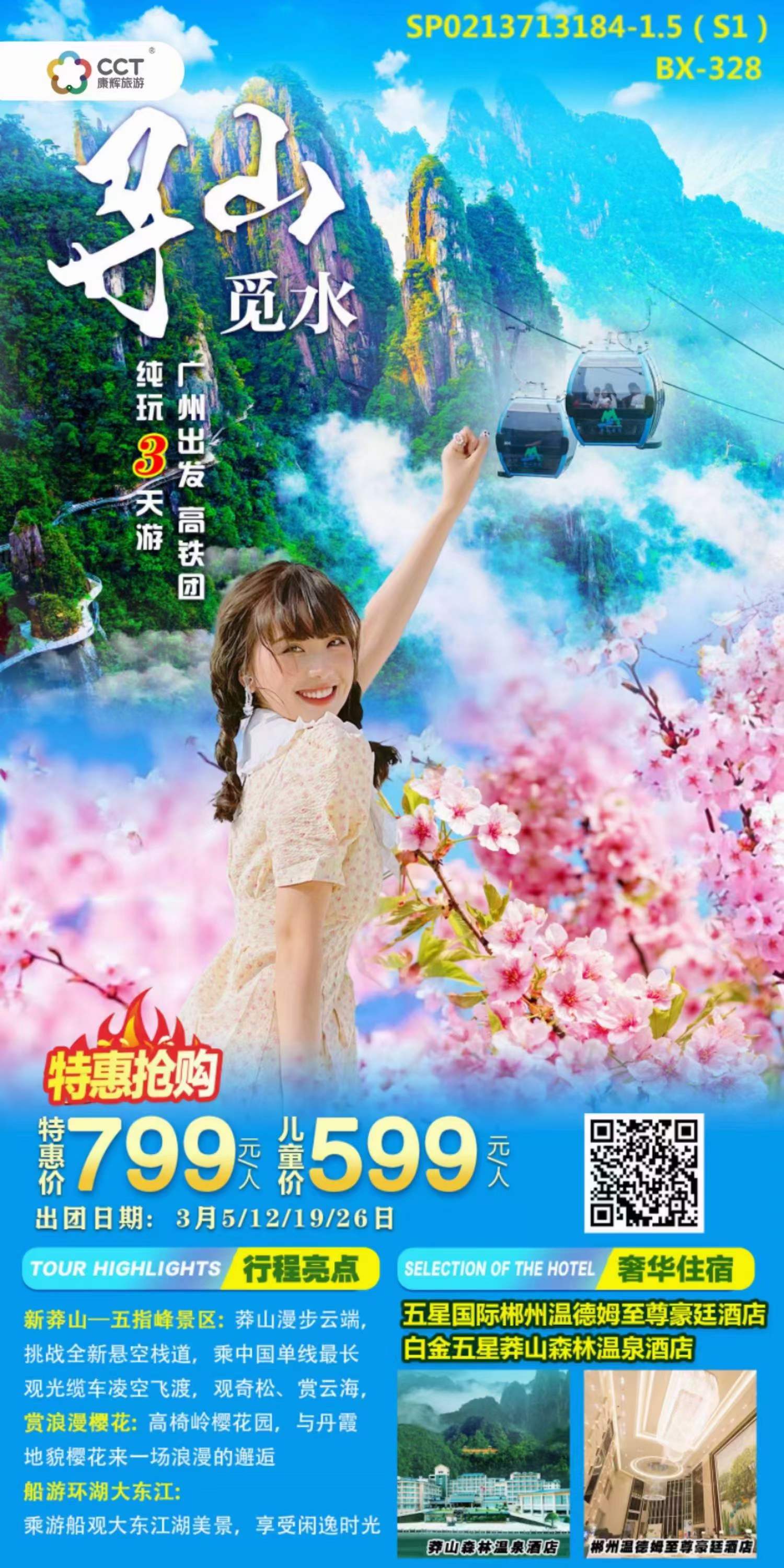 【尋山覓水】廣州往返湖南莽山五指峰、賞櫻花、郴州大夜景、莽山森林溫泉酒店雙高三天
